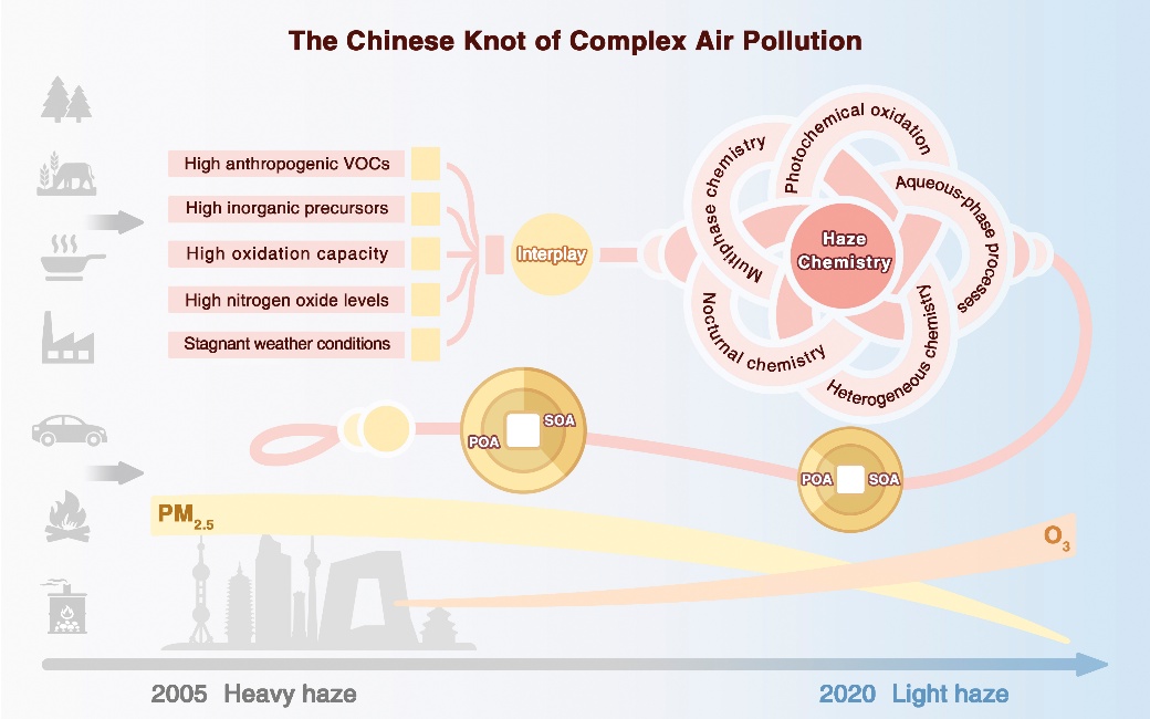 城市空气污染是全球性环境问题。2013年以来,随着我国大气污染治理措施的深入推进,一次颗粒物排放得到有效控制,而由氮氧化物、挥发性有机物等前体物经大气化学反应生成的二次气溶胶(尤其是二次有机气溶胶)成为霾污染的主导因素,亟需系统研究其形成机制。